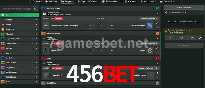 O 456bet oferece uma grande seleção de opções de apostas em e-sports com probabilidades competitivas